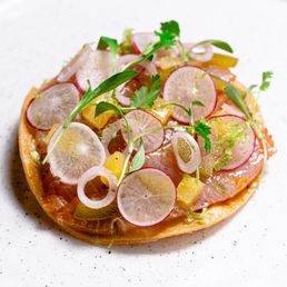 Overall a good restaurant, but in my opinion overpriced for the flavors. I appreciate the story of local farming, but wished those ingredients were highlighted more honestly and expected a step above in flavor/concept. The space is beautiful and large. Service was amazing. Cocktails were excellent. Tried the Stones Throw and High And Dry and really enjoyed both of them. Just had higher expectations for the food for the price. But overall still good, just not great. More details: SD halibut hand roll: 3.5 - wrapped in a perilla leaf and a small touch of sauces applied. this was good, but for such a small bite I would have preferred something that packed more of a punch. R&L farms stone fruit: 2.5 - this was a big miss for me. I would have preferred for the stone fruit to really be highlighted as the predominant flavor, but everything sort of fell flat in the almond crema which took over and the dish was lacking a lot of acidity in my opinion. Pixca farms summer beans: 3.5 - these were decent. I liked all of the beans except for the dragons tongue. That felt like it needed a different preparation or blanched for longer or something as they were pretty tough. flavors were decent. Miso black cod: 4 - this dish on its own was delicious, but it had such a delicate flavor profile that I'm not sure how it belongs on a small plates menu, it got lost by the two dishes to either side of it. Spanish octopus: 4.5 - this was my favorite dish. some of the best cooked octopus I've had in San Diego so far. super soft and tender with just enough chew to it. I thought the sauce pairing was just alright, but the cook on the octopus made up for it. Rigatoni al forno: 4 - this was pretty good. really rich in flavor and pasta cooked really well. wish it had something with a touch of texture in it though, but overall was enjoyable. Worth visiting to have a good meal, but yeah, on the expensive side for the flavor quality.